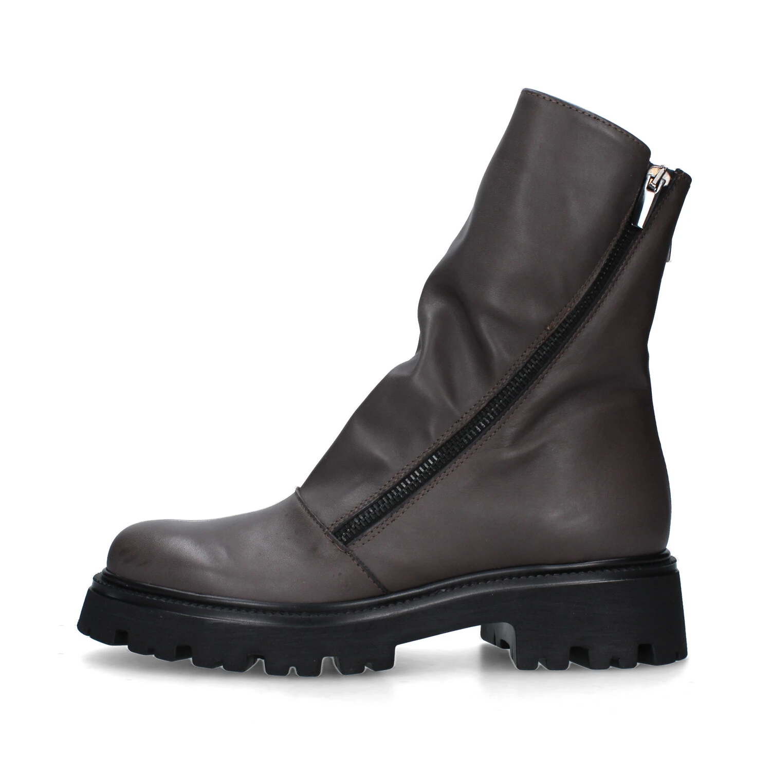 STIVALETTI TACCO BASSO CON CERNIERA OBLIQUA DONNA GRIGIO