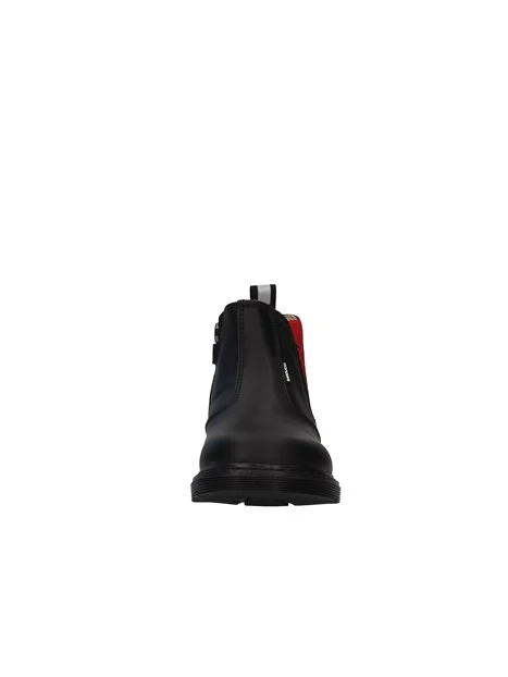 Stivaletti neri con elastico rosso interamente realizzati in pelle rifiniti dal logo con stella. La struttura di queste calzature garantisce morbidezza e resistenza per un comfort ottimale. Pratico da calzare grazie alla chiusura con zip che ne consente la regolazione.