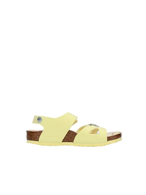 Sandali gialli da donna Birkenstock con fibbia e fondo in gomma. La tomaia in eco pelle è abbinata a una suola robusta che assicura un comfort duraturo e la struttura di queste calzature, traspirante e leggera, assicura freschezza e grinta anche durante le ore giornate più calde.