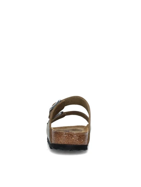 Ciabatte Birkenstock realizzate in pelle nabuk oliata, dotate di chiusura con fibbie regolabili e di una suola spessa in gomma altamente confortevole e resistente. Traspiranti e leggere, queste calzature assicurano grinta e freschezza anche durante le giornate più calde e sono versatili e facili da abbinare.
