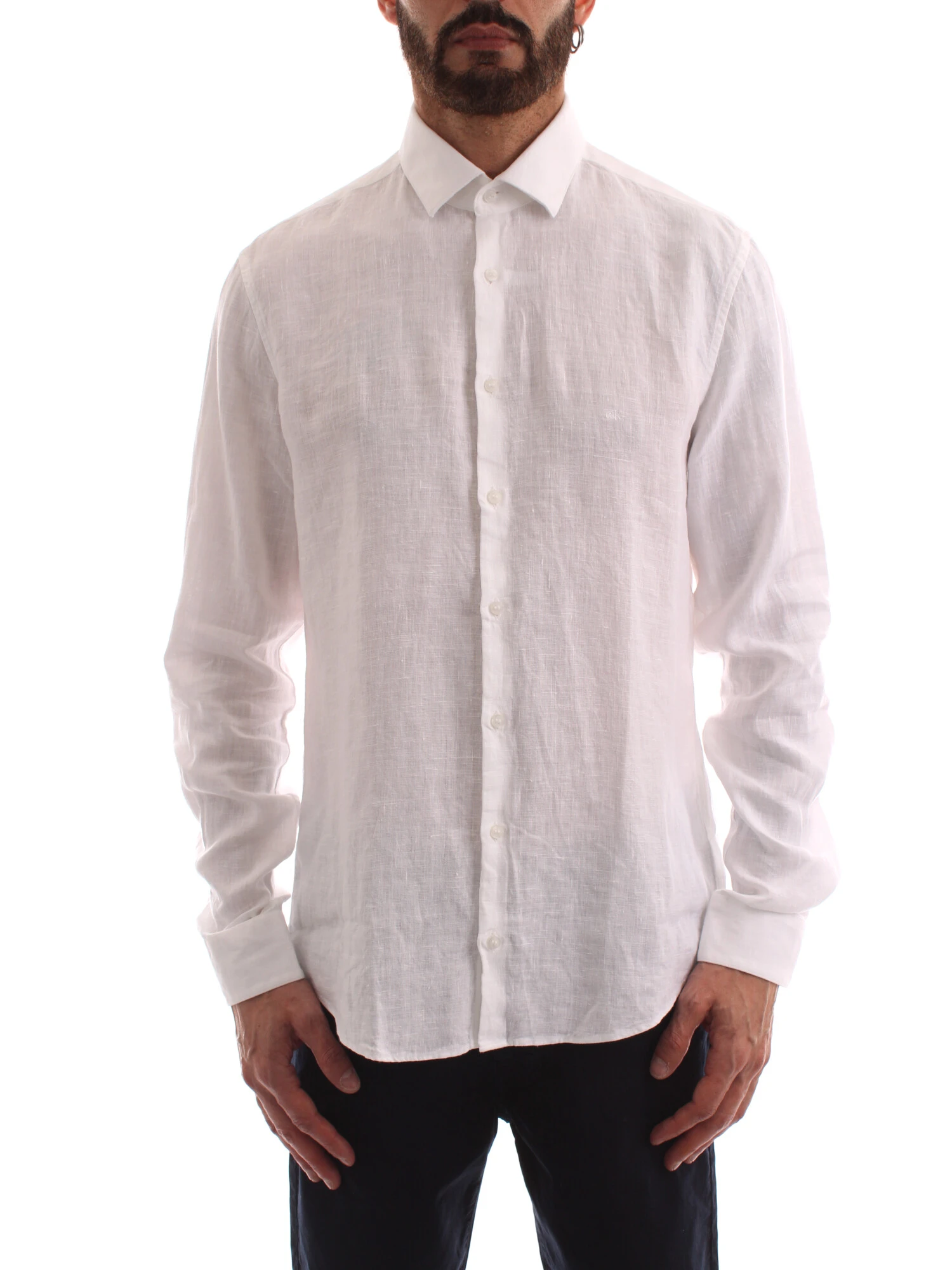 Camicia bianca della linea Calvin Klein, in lino. Presenta una linea dritta, un colletto classico, ed una chiusura con bottoni. Perfetta per accompagnare con stile i momenti di tempo libero, o le occasioni più informali.