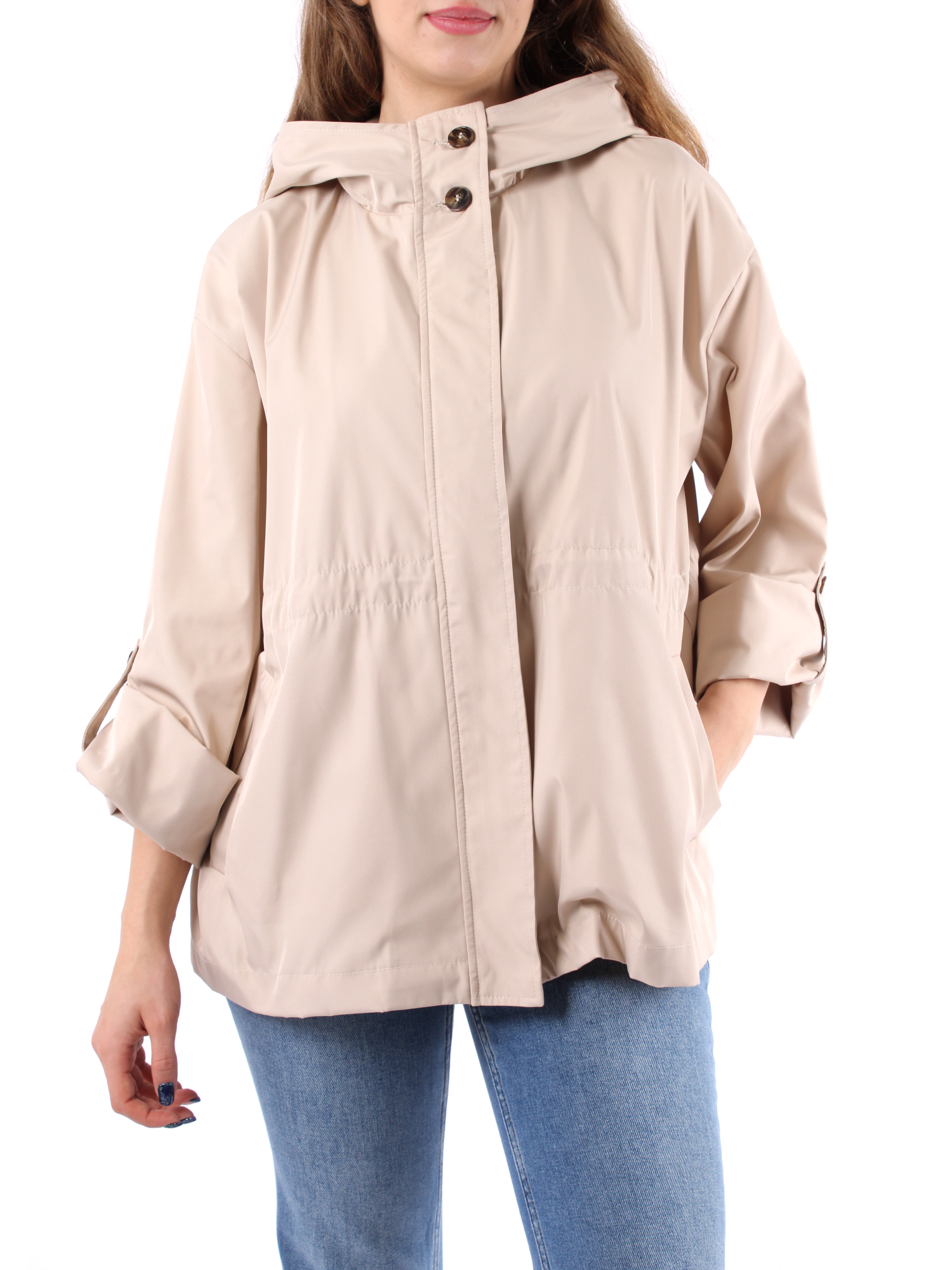 GIACCA IMPERMEABILE CON COULISSE E CAPPUCCIO DONNA ECRU