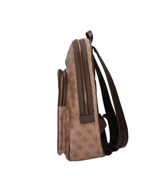 Zaino Guess realizzato in pelle sintetica con stampa 4g allover con logo frontale in alto. Dotato di spazi per trasportare laptop e altri dispositivi in totale sicurezza. Viene arricchito all'esterno con una tasca frontale con zip e una con clip. Gli interni sono personalizzati con molteplici tasche e le tracolle regolabili rendono questo zaino molto pratico.