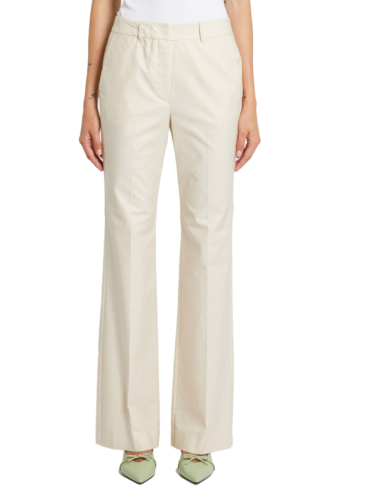 Il mix di cotone stretch assicura morbidezza e traspirabilità, mantenendo la forma e garantendo un comfort ideale per tutto il giorno. La chiusura nascosta contribuisce a un effetto minimal chic, perfetto per un guardaroba elegante e funzionale.