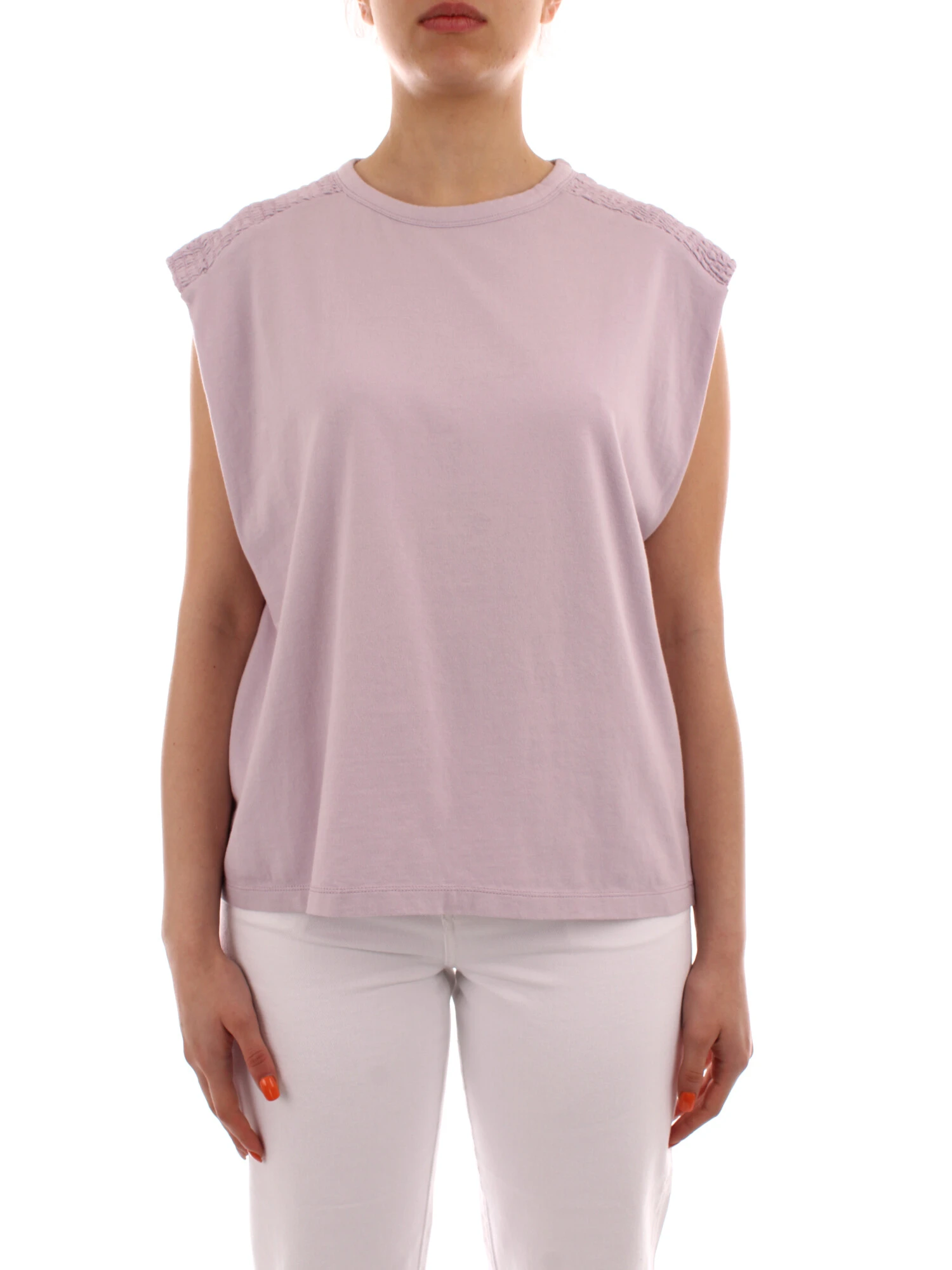 T-shirt della linea Roy Roger's, in jersey. Presenta uno scollo rotondo e spalline leggermente imbottite. È caratterizzata da uno stile minimal e versatile, con il quale si possono sperimentare sempre nuovi abbinamenti di look.