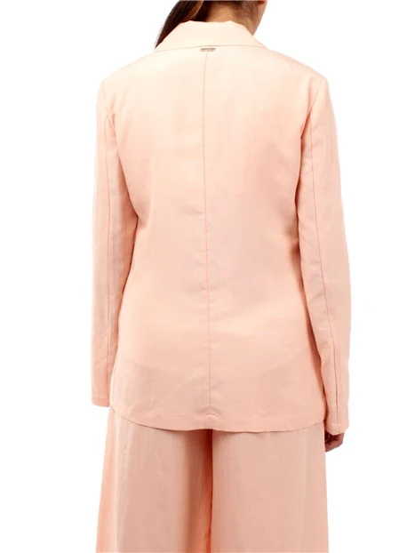 Giacca Blazer monopetto della collezione Liu Jo da donna. Caratterizzata dal tessuto in misto lino, collo a rever, chiusura centrale con bottone e due tasche a filetto. Dalla linea leggermente accostata. Il blazer si rivela un prezioso alleato per finire in bellezza ogni look.