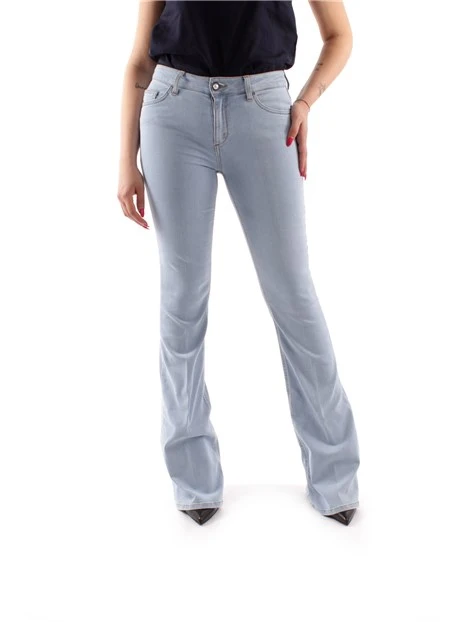 Jeans bottom up in denim di cotone stretch da donna della collezione Liu Jo. Vita regolare, gamba flare che si allarga al fondo, chiusura con bottone e zip nascosta. Un vero must have del guardaroba femminile