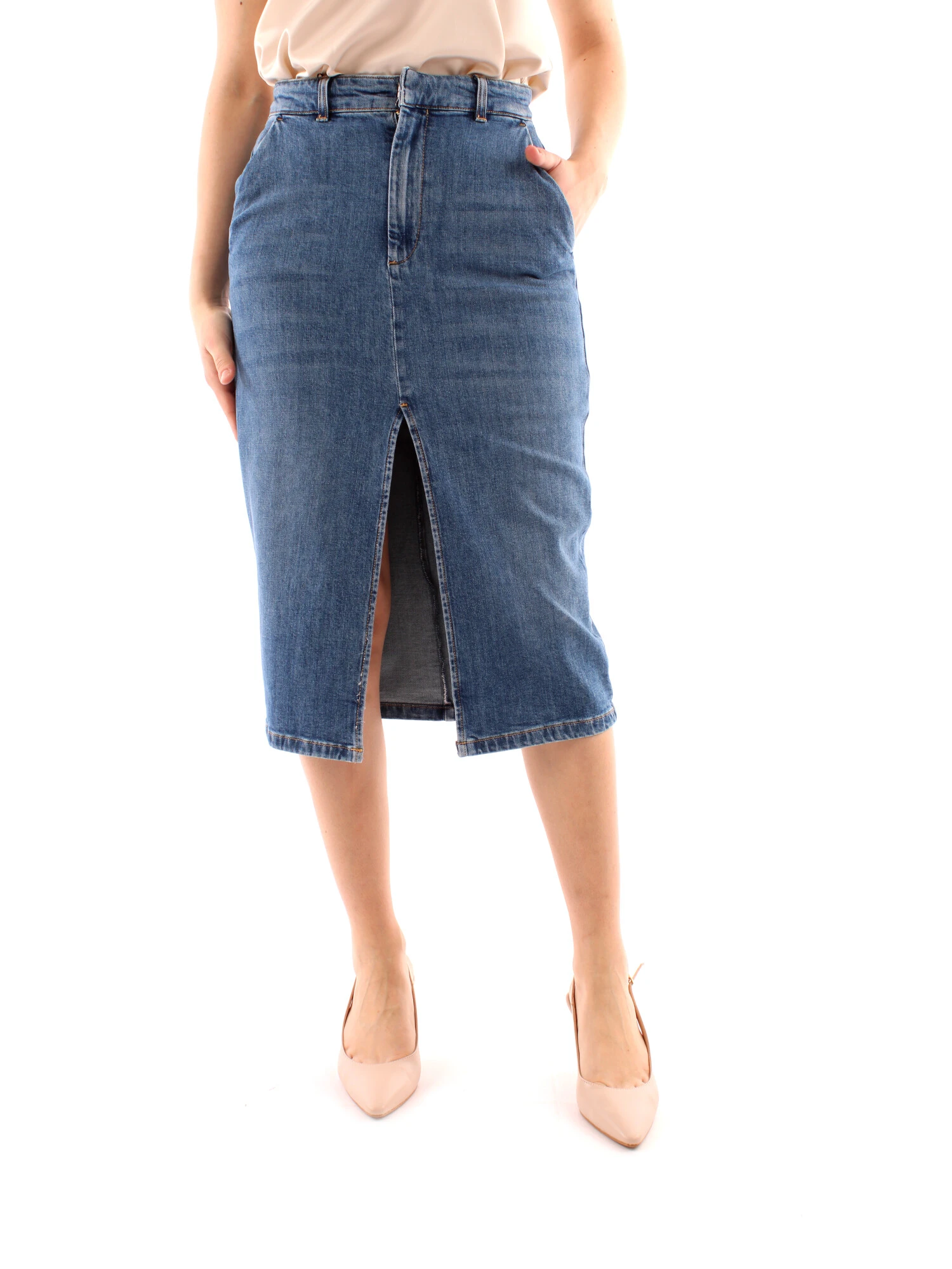 Gonna midi da donna, della collezione Marella Sport, realizzata in denim di cotone, dalla linea svasata al fondo e caratterizzata dall' ampio spacco centrale, sfoderata. Realizzati in denim di cotone stretch, questi pantaloni offrono comfort e stile ineguagliabili. Con una linea dritta e uno spacco centrale sul davanti, aggiungono un tocco di originalità alla silhouette classica. La vita alta e la chiusura con gancio e zip nascosti garantiscono una vestibilità perfetta e un aspetto pulito. Le tasche alla francese davanti e a filetto dietro offrono un'ulteriore praticità senza compromettere lo stile. Versatili e chic, questi pantaloni sono un must-have per ogni guardaroba, perfetti per creare outfit casual eleganti e senza tempo.