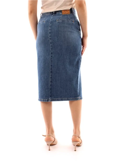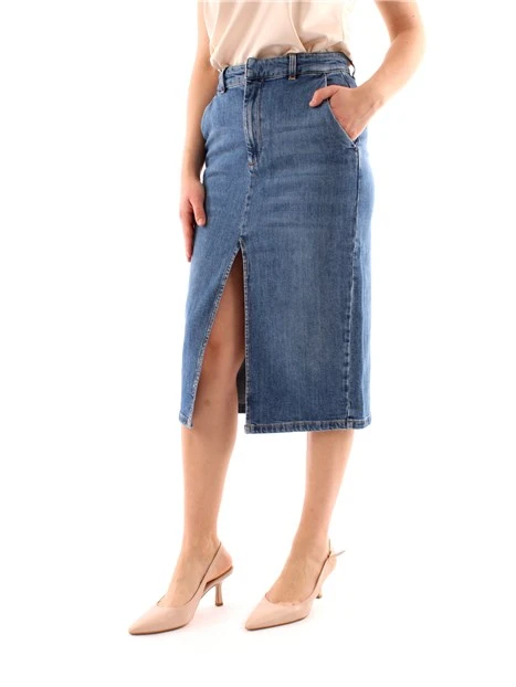 GONNA LUNGA DI JEANS IN DENIM DI COTONE CON SPACCO DONNA BLU