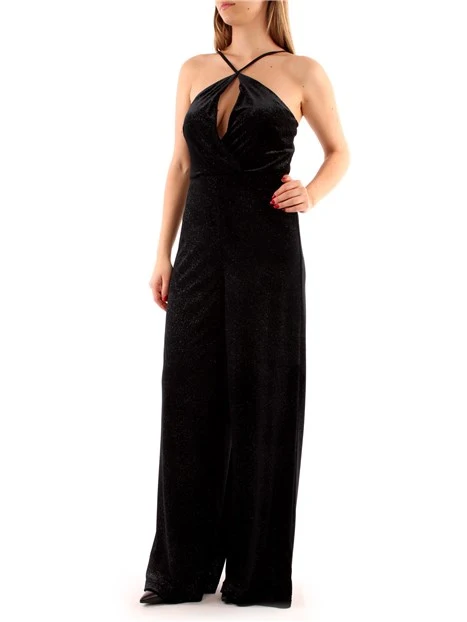 Tuta da donna, della collezione Marella in velluto glitter, dalla linea dritta con incrocio e goccia sul davanti. Scollo halter, spallini sottili. Chiusura con zip invisibile sul retro. Indossalo per un look ladylike, femminile e sofisticato, perfetto per un'occasione speciale.
