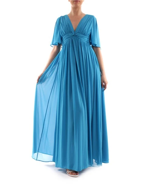 VESTITO LUNGO IN GEORGETTE CON SCOLLO A V DONNA TURCHESE