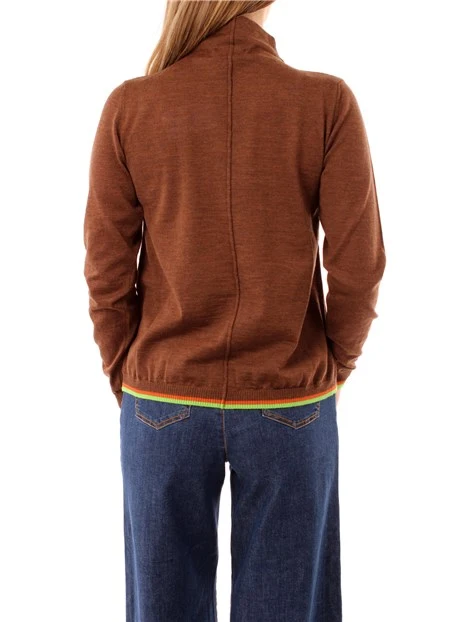 MAGLIA DOLCEVITA CON BORDI A COSTINE DONNA MARRONE