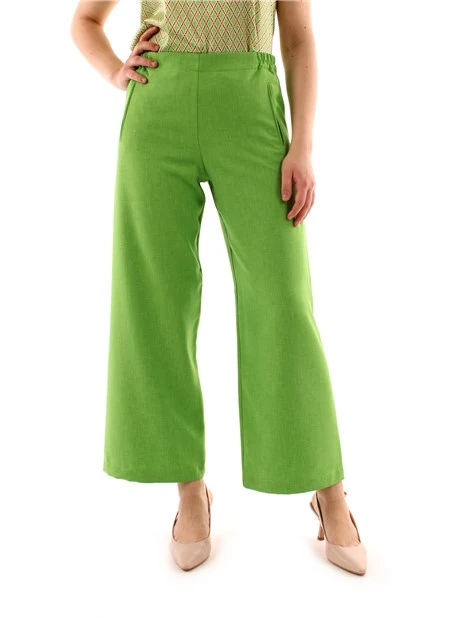 Pantaloni bojan in lino da donna, della collezione Niū Fashion, caratterizzati dalla vita elastica sul retro e tasche a filetto. Con la loro linea morbida, sono ideali da indossare da mattina a sera.