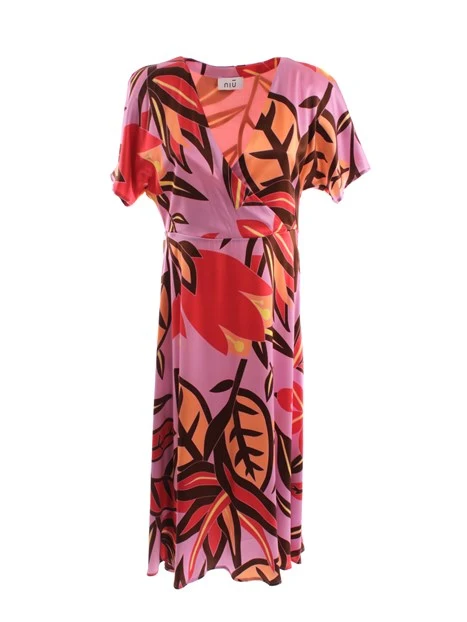 Vestito della linea Niù realizzato in cotone. Presenta una linea morbida ed una vestibilità regular. Dispone di uno scollo a V, maniche kimono, un laccio in vita ed una stampa fantasia all over. Indossalo per un look ladylike, femminile e ricercato.