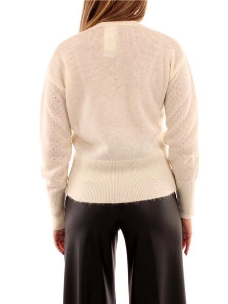 Cardigan da donna, della collezione Pennyblack in misto di lana e alpaca con bottoni gioiello e piccoli strass sul davanti e le maniche. Scollo a V profondo e spalle scese, ha linee morbide e bordi alti e aderenti ai polsi e al fondo. Quel che ci vuole per riscaldare il party look.