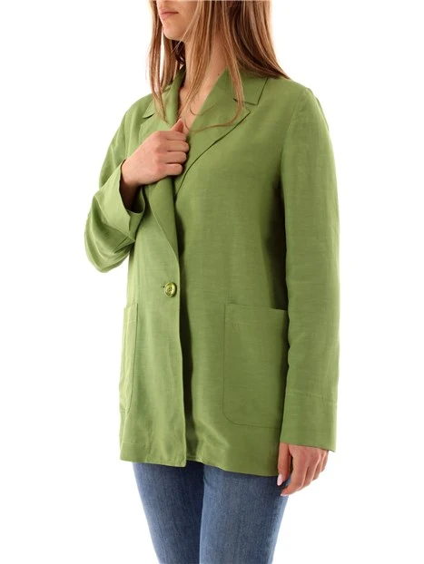 Giacca Blazer monopetto della collezione Pennyblack da donna. Caratterizzata dal collo a rever, chiusura centrale con bottone e due tasche applicate. Dalla linea leggermente over. Il blazer si rivela un prezioso alleato per finire in bellezza ogni look.
