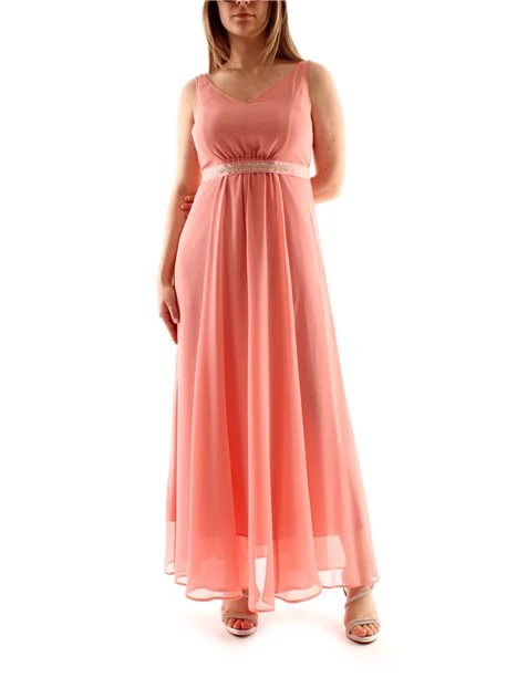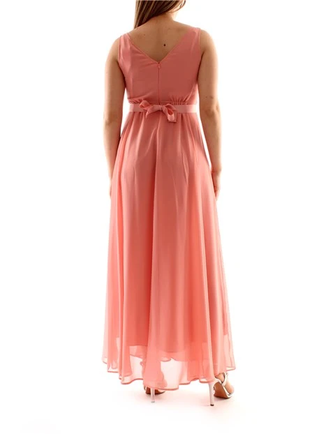 VESTITO LUNGO IN GEORGETTE CON SCOLLO A V SMANICATO DONNA ROSA