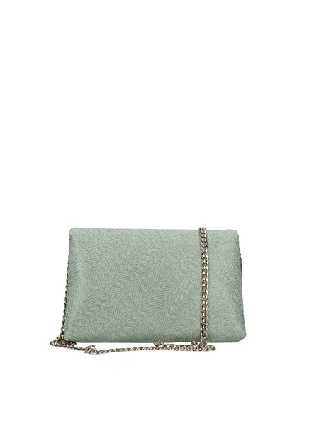 Pochette della linea Menbur, realizzata in tessuto. Presenta al suo interno due scomparti aperti e una tasca con zip che ne ottimizzano lo spazio. Dispone di una tracolla in catena e di una texture glitterata effetto onda. Si contraddistingue per uno stile elegante e ricercato. Perfetta per completare un look elegante o da cerimonia.