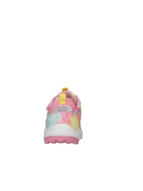 Sneakers rosa Primigi da bambina con chiusura a strappo. Realizzate in tessuto colorato con stampa fantasia, queste calzature garantiscono morbidezza e resistenza, facendo affidamento sulla suola traspirante in gomma, durevole e confortevole.