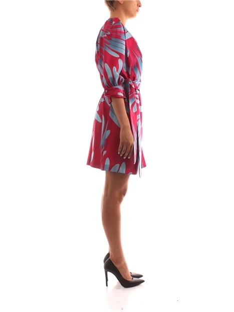 Abito da donna della collezione Marella in raso di seta con stampa a fantasia, dalla linea scivolata, scollo a V e maniche a palloncino.